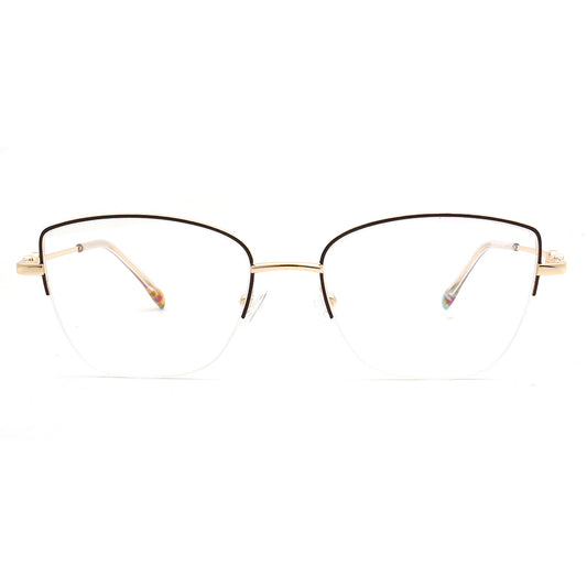 Emma | Classic Women Semi Rimless Eyeglass Frames | Half Rim Rectangle Metal Female Eyewear