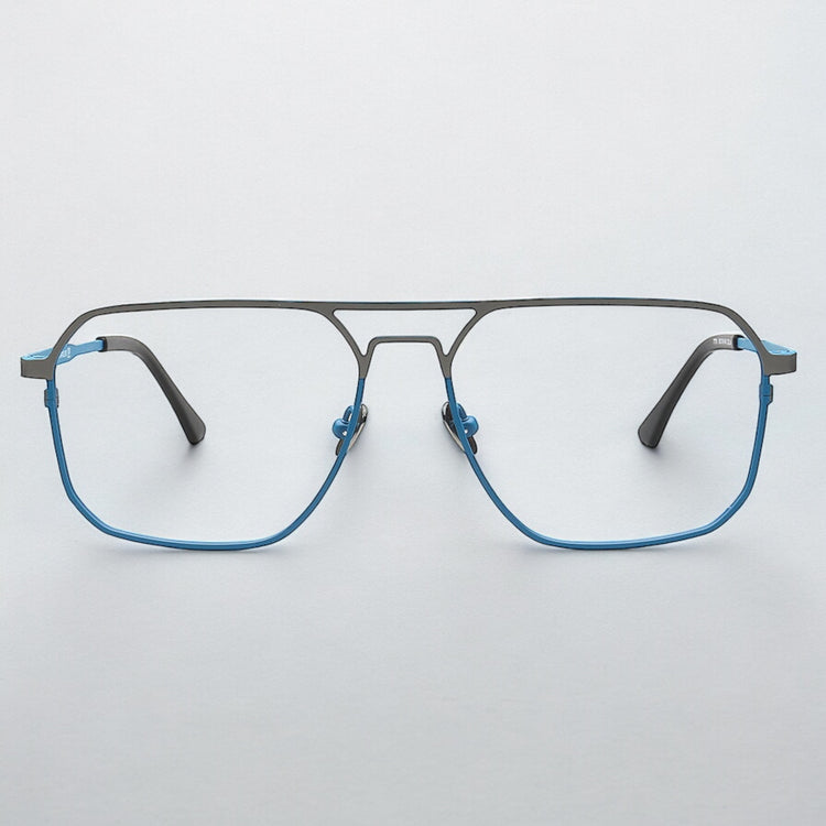 Jeffrey | 80s Titanium Pilot Eyeglasses Frames for Men | Modern Two Tone Square Vintage Glasses Frame
