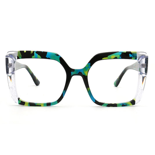 Sophia | Monturas de gafas cuadradas extragrandes modernas para mujer | Elegantes gafas de carey verde bicolor para mujer