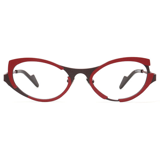 Tracy | Elegantes gafas de ojo de gato de titanio puro para mujer | Anteojos rojos morados de moda de dos tonos