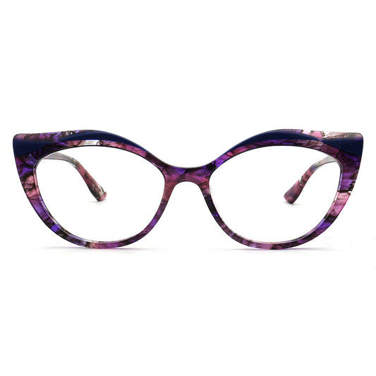Alina | Monture de lunettes œil de chat violette effet écaille de tortue pour femme | Lunettes optiques rétro modernes vertes