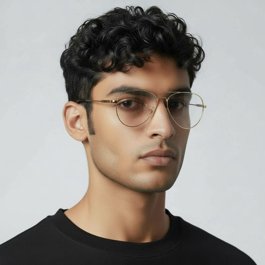 Domingue | Montures de lunettes pilotes pour hommes à dessus plat | Montures de lunettes flexibles et pliables en métal à mémoire de forme