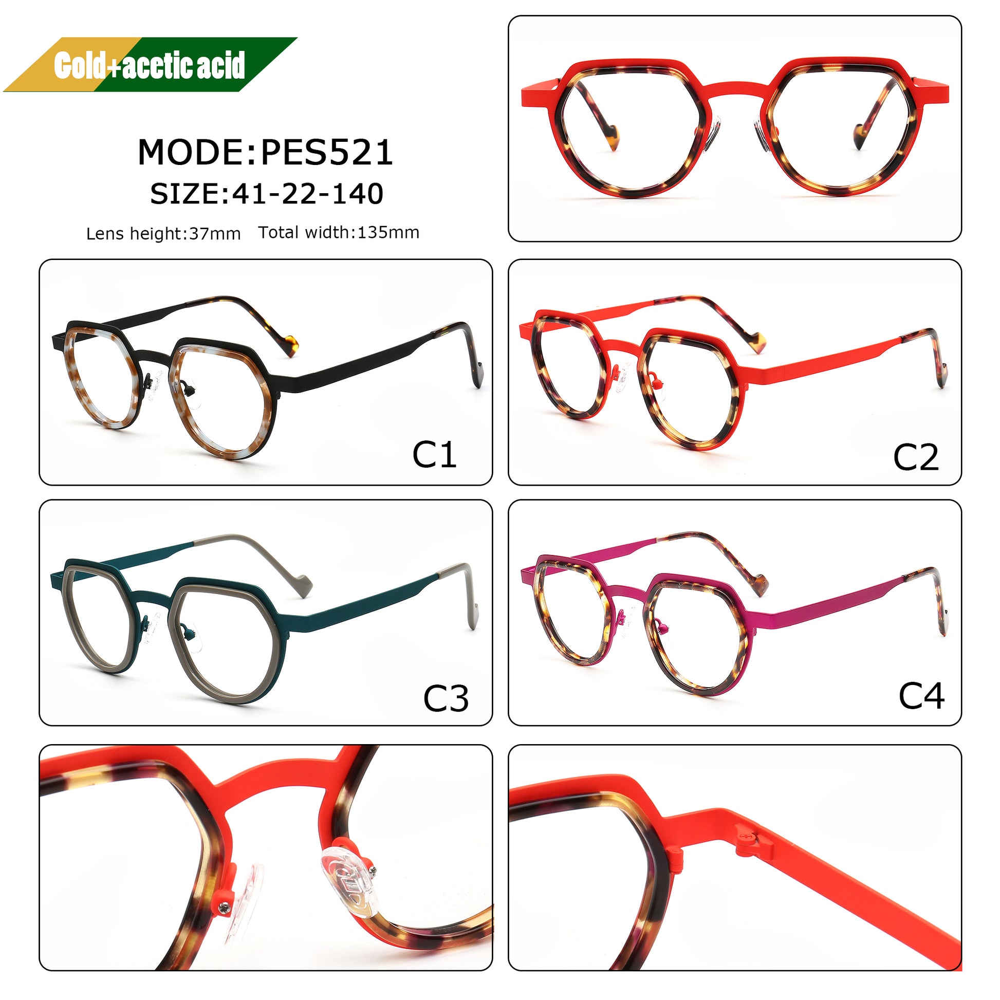 Crafted from a premium mix of metal and gold-accented resin, these frames offer the perfect blend of lightweight comfort, durability, and refined style. The metal temples provide strength and stability, while the glossy gold-accented resin adds a touch of modern luxury.