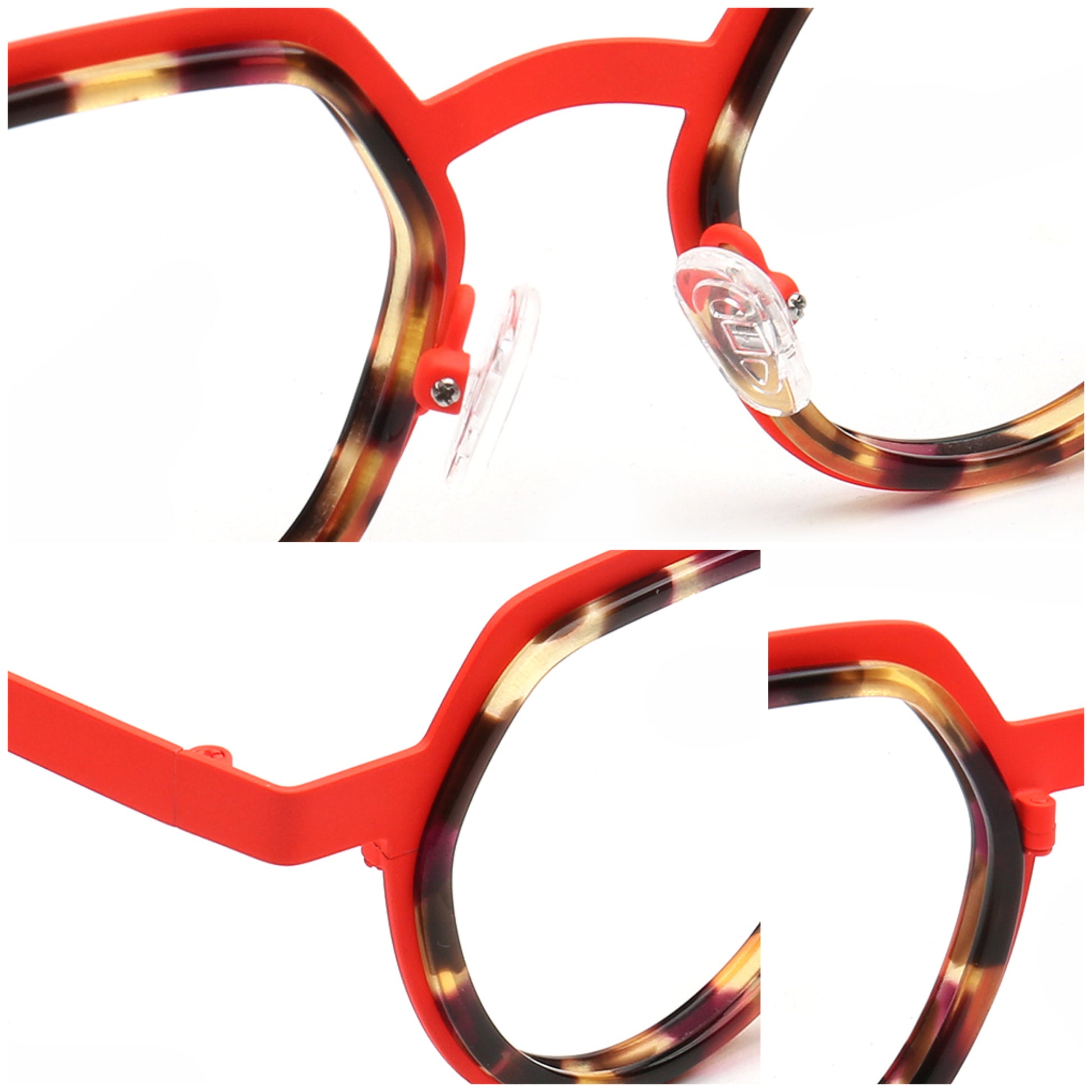 Featuring a two-tone tortoise shell design, these spectacles bring a stylish twist to a timeless silhouette. Available in Black Tortoise, Red Tortoise, Green/Grey and Rose Red/ Tortoise, each color combination delivers a unique and fashionable look that fits any personality.