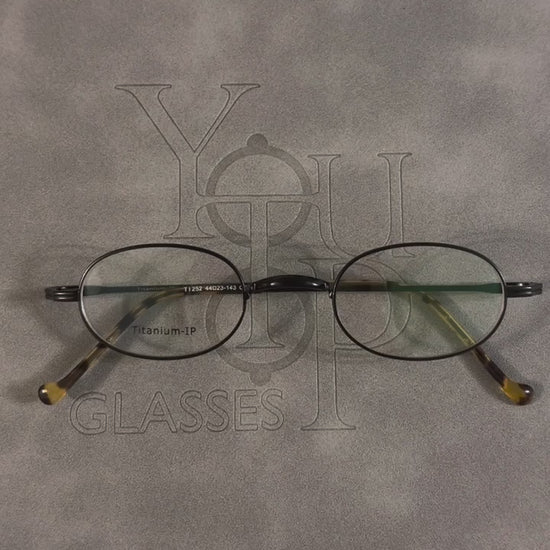 These old schooleyeglass frames are made of pure titanium material, which is lightweight and comfortable to wear. In addition to being durable and flexible, here are a few other benefits of titanium eyewear frames: They're hypoallergenic and good for people with sensitive skin. These retro spectacles come with gold, gunmetal, silver, blackand gold/black color options. The classic oval shape design allows these glasses to be worn by both men and women.